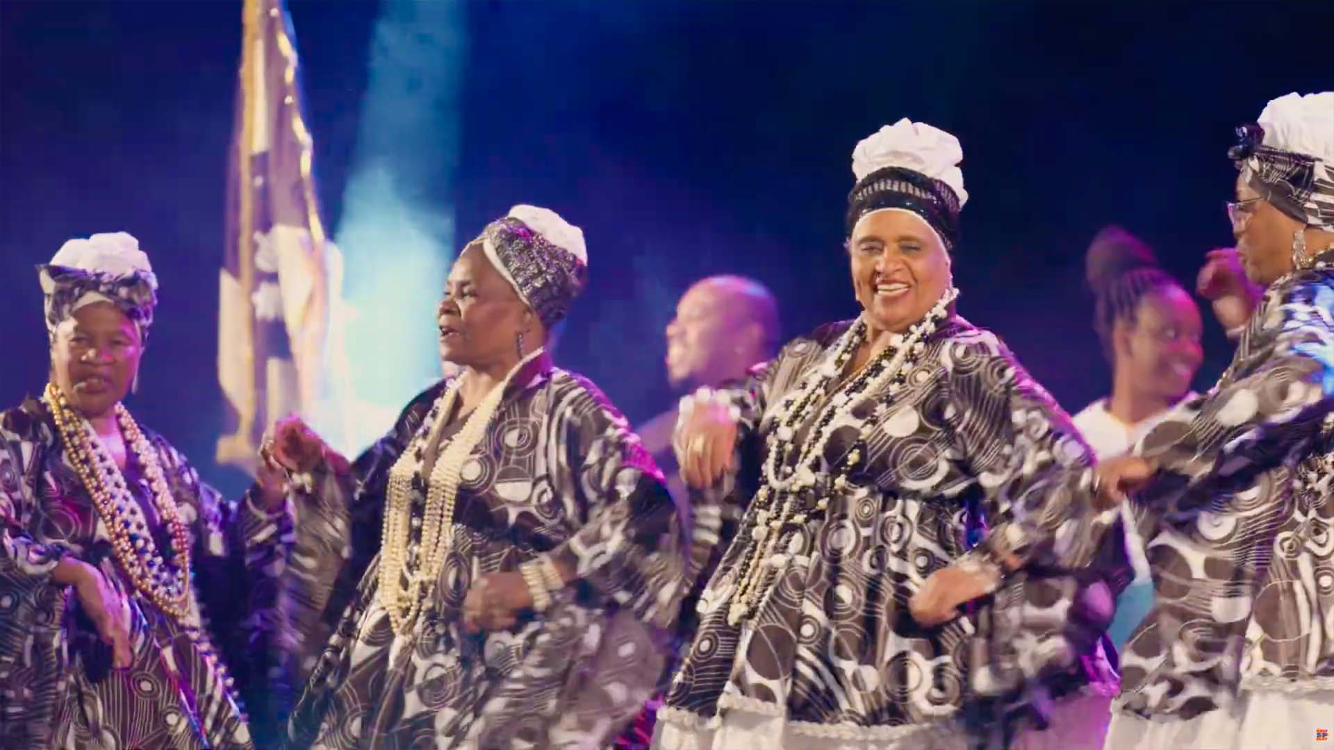 Apresentação do grupo Canto da Senzala durante o Revelando SP 2025 no Parque do Trote, São Paulo, capital.